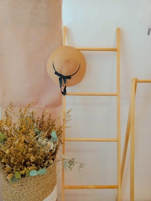 PDF instructions often detail varying rung spacing, allowing customization based on blanket thickness and desired aesthetic. Many plans emphasize the importance of wall anchors or anti-tip kits for safety, particularly in homes with children or pets. The construction process, as outlined in the plans, generally involves cutting ladder sides at an angle, attaching rungs with screws and wood glue, and finishing with sanding and a protective coating.